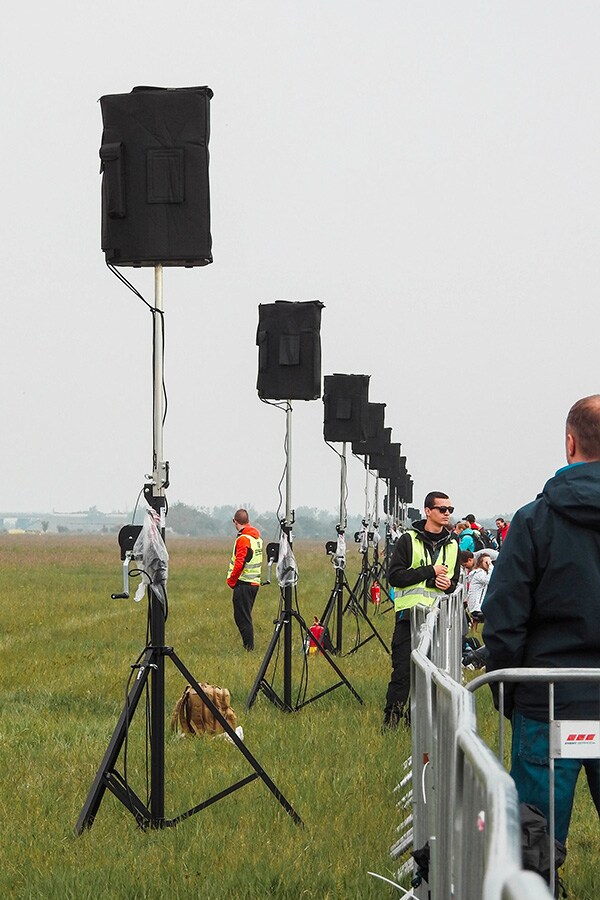 “We had to consider that there may be up to 100,000 spectators in the main area and all of them had to hear and understand announcements, even when aircraft were passing and in bad weather like wind and rain. The speakers could also only be positioned along the boundary of the spectator area.”