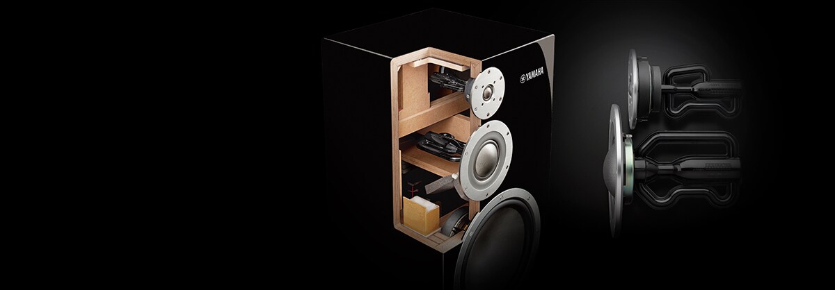 Aided by laser-scanning measurement and state-of-the-art FEM analysis, we developed a unique enclosure structure that effectively controls “box ringing” to a degree undetectable by human ears. Inside the enclosure, we installed proprietary reinforcing bars designed by simulating with pinpoint precision the way sound from the speaker units is transmitted to and emitted from the six surfaces of the enclosure. These reinforcing bars play an important role in perfectly synchronising the timing of acoustic resonances generated by the enclosure, which helps reproduce the natural acoustic vibrancy with amazing purity and clarity — offering a listener with an unprecedented level of immersive audio experience.