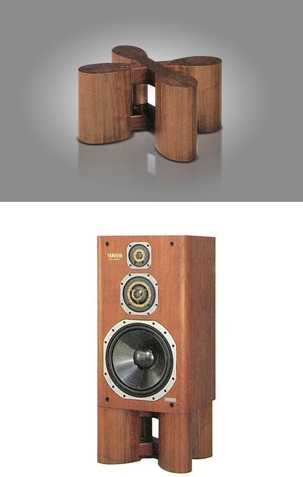 A high class speaker stand that luxuriously employed African Paddock, a rare wood used in marimbas.