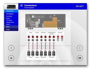 Based on your selected speaker layout in earlier step, this app shows you to which speaker terminals the speakers need to be connected.