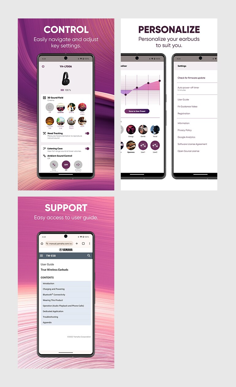 Easily control and personalize your Yamaha earbuds with the Headphone Control App.