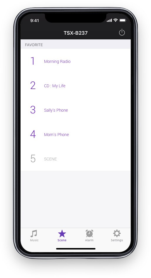 Simply register your favorite music sources and content to a “Scene” beforehand, and then call up that favorite music immediately with one single touch.
