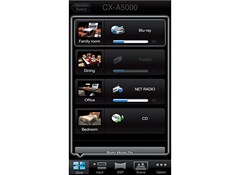 The AV Controller app is extremely useful for controlling various functions in multi-zone installations. Zone selection is easily done by choosing zone icons, which can be changed (bedroom, kitchen, etc.). You can control power on/off, input selection and the volume level in each zone, and also rename the zones. The app also shows when the Party mode is being used, and allows volume control of the Party function.