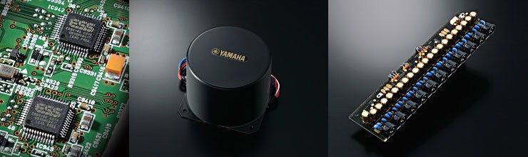 As part of the no-compromise design policy, Yamaha created an advanced chassis with strong rigidity. Chassis stiffness is enhanced by an H-shaped cross frame that boosts mechanical strength, by adopting aluminium side panels that increase the stiffness of the housing, and by a three-ply structure with independent top cover and side panels. Any external vibration from the rack or other sources is damped by heavy insulators. The A.R.T (Anti-Resonance Technology) Wedge in the centre of the bottom cover acts as an additional vibration countermeasure and firmly supports the internal circuits and delicate parts. In addition, this model has a double bottom chassis and rigid bottom frame to further enhance chassis rigidity and reduce the transmission of vibration produced by the large power supply and other internal components.
