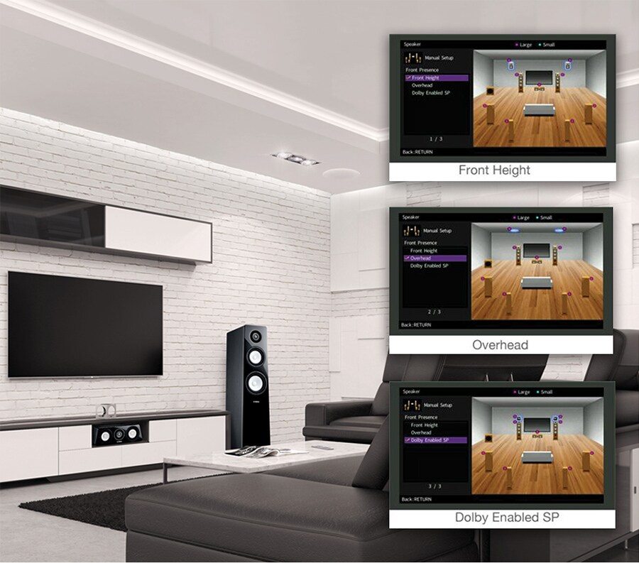 Yamaha provides multiple placement patterns for presence speakers that support Dolby Atmos - creating a sound field that’s ideal for your setup.