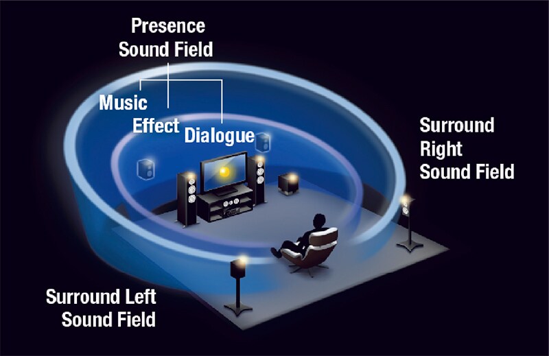 CINEMA DSP 3D provides a wide, high and dense sound field, while HD Audio format decoding lets you enjoy HD Audio sources. Moreover, the Virtual Presence Speaker function delivers three-dimensional sound without the actual use of presence speakers — giving you a rich sound field virtually equivalent to 7.1-channel surround, even with a 5.1-speaker configuration.