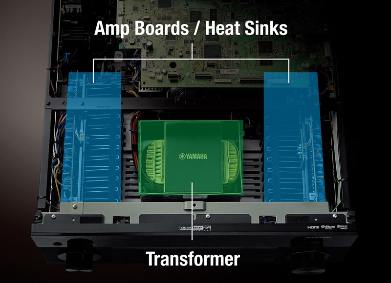 Every single part in an AV receiver affects the sound quality. For the RX-V1085, extra time is taken to carefully select the most exacting, high-quality parts ― including a large-capacity power amplifier unit with damping heat sink, a custom large power transformer, high-performance DSP devices, and so on ― in order to achieve the highest performance possible. Moreover, sound technicians employ rigorous testing processes to optimally “tune” the receiver’s sound.