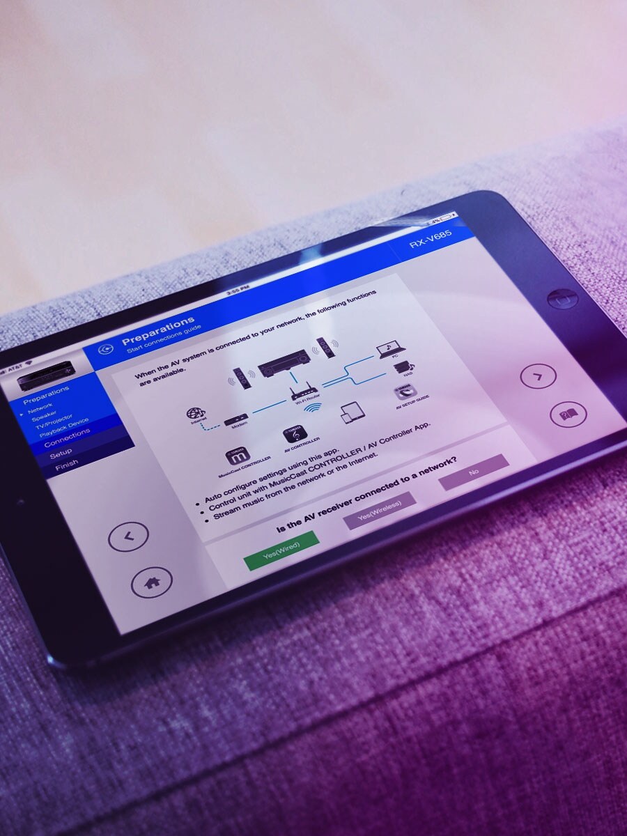 No worries, no confusion. Use this special app and get expert assistance with cable connections between the AV receiver and source devices. It even guides you through various other settings such as speaker connections, TV and source device connections and power amplifier assignments.