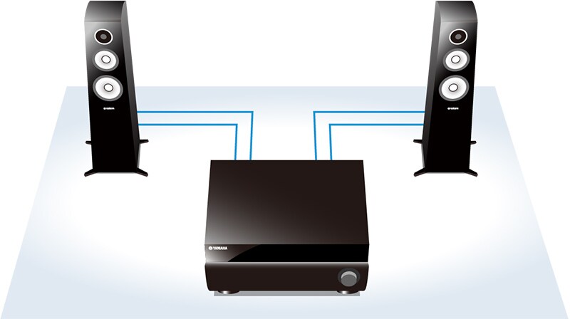 The RX-V385 features bi-amping capability, driving the treble and bass ranges of the front speakers (L, R) with independent amplifiers. In addition to providing greater power, it also prevents interference between the high and low sounds, further improving the sound of the front speakers.