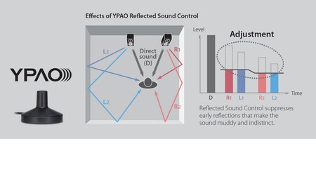 YPAO-R.S.C. analyses room acoustics and measures various speaker characteristics, then calibrates audio parameters to achieve optimum sound. It employs Reflected Sound Control to correct early reflections for studio-quality sound. It also provides DSP Effect Normalisation, which varies the CINEMA DSP parameters according to the reflected sounds.