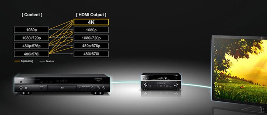 - HDMI® terminals with 4K upscaling for even higher video quality