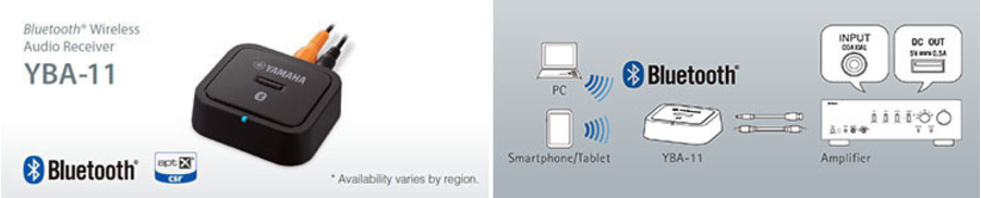 With the YBA-11, you’ll be able to stream music wirelessly from a Bluetooth capable mobile phone or a PC to the Network receiver. Thanks to the digital connection and aptX® audio coding algorithm, you’ll enjoy wireless music streaming with optimum sound quality. You can also conveniently power the YBA-11 via the DC-out connection on the rear panel of the amplifier.