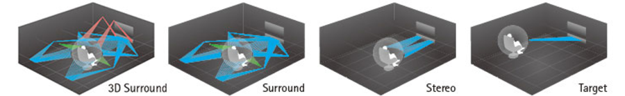 For reproduction of the latest surround sound formats such as Dolby Atmos and DTS:X, the relationship between the listening position and the height channel locations is very important for faithful reproduction of the sound space. The YSP-5600 adjusts the angle of the sound beam directed at the ceiling allowing the height channel position to be matched to the listening position either manually or automatically. Even if the listening position relative to the display changes, you’ll get the effect of the height channel for natural 3D surround sound.