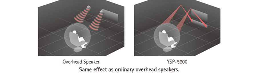 With many soundbars positioned below the TV, especially when the TV is a widescreen model, dialogue and vocals seem to be coming from below the people who are talking or singing. To prevent this problem, the YSP-5600 has a Dialogue Lift function (adjustable in three steps) that causes the reflecting beams from its array speakers to raise the apparent height of the dialogue to appropriate levels on the screen. You enjoy sounds and images that are perfectly aligned, just as in a movie theatre.