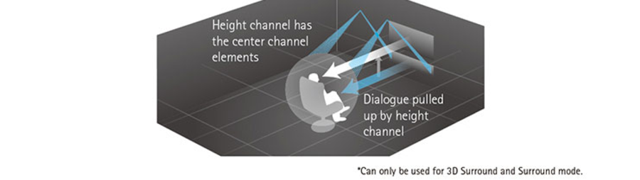 - Six height channel speakers on each side provide 3D surround sound reproduction equivalent to 7.1.2 channels