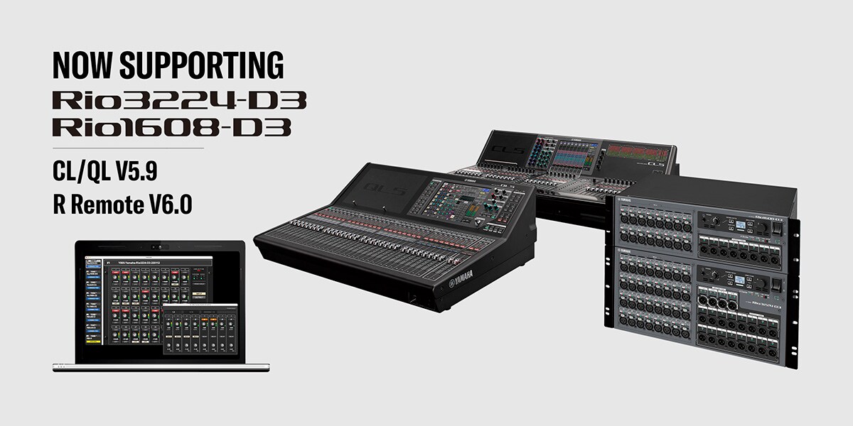 March 13, 2025, Shizuoka, Japan – Yamaha has released new firmware for its CL/QL series digital mixers and the latest version of I/O parameter control application, R Remote, which support the new Rio3224-D3 and Rio1608-D3 I/O racks.