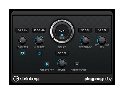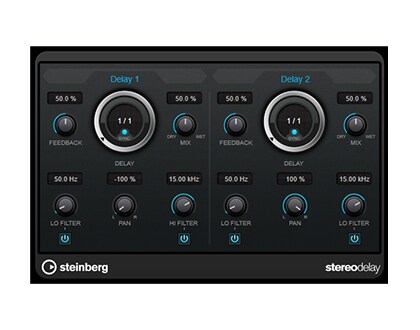 StereoDelay has two independent delay lines which either use tempo-based or freely specified delay time settings.