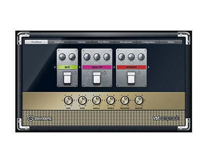 AmpSimulator is a distortion effect that emulates the sound of various types of guitar amp and speaker cabinet combinations. A wide selection of amp and cabinet models is available.