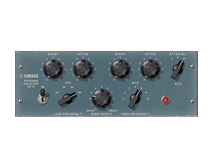 EQ-1A emulates a vintage EQ that is said to be representative of passive EQs. It has a unique operation style in which the low and high frequency bands are adjusted with separate boost and attenuation (cut) controls. The frequency response, which is completely different from other commonly used EQs, has a character that is unique to this model. In addition, the texture produced by the input/output circuits and vacuum tubes is very musical, for a well-balanced sound. This plug-in operates in mono or stereo mode, depending on the channel configuration of the rack.