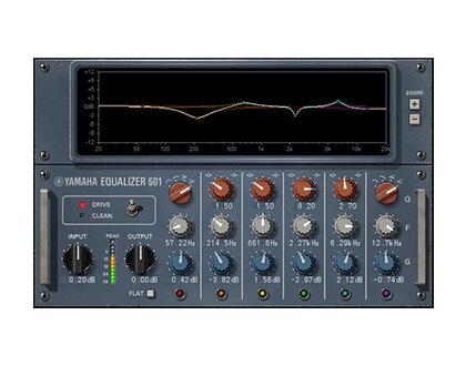 Equalizer 601 emulates the characteristics of an analog equalizer from the 1970s. You can get a sense of drive by reproducing the distortion that is unique to analog circuits. This plug-in operates in mono or stereo mode, depending on the channel configuration of the rack.