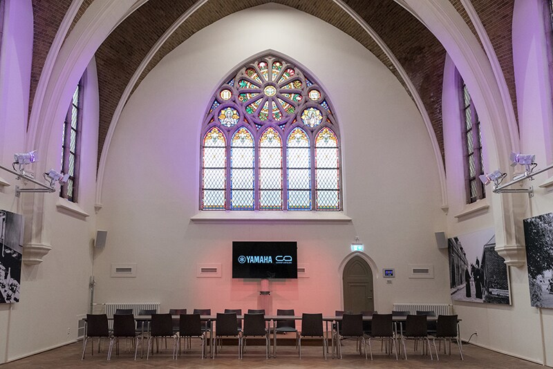 The AV facilities were designed and installed by Dennis van der Vleuten, of Oisterwijk-based Klundert Audiovisual. As is often the case, the technical infrastructure is complex, but its operation needs to be very clear and straightforward. Yamaha audio systems are the ideal solution for these needs, here covering four main areas; the foyer, restaurant, Kerkzaal (Church Room) and Kapittelzaal (Chapter Room).