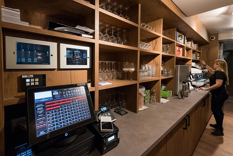 In the restaurant - located on two floors - 12 VXS5W, nine VXS3FW and one VXC4W loudspeakers cover six zones (bar, lounge/hallway, each floor of the restaurant, terrace and toilets), with another XMV8280, MTX3 and ProVisionaire Touch for power and control.