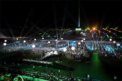 “The 1500 musicians were grouped by instrument and split in two, so there were two ‘drum areas’, two ‘bass areas’, two ‘guitar areas’ and so on,” says Yamaha’s Alessandro Arturi. “As you can imagine, several hundred drum kits and electric guitar amplifiers make a lot of noise by themselves! We supplemented this for the mixes with microphones - either close miking or one microphone per two or three instruments.