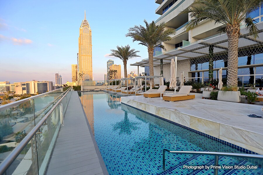 Located next to Dubai’s Media and Internet City hub, the Grand Plaza Mövenpick Media City hotel features 235 rooms and suites, five restaurants/bars, a 1150m2 state of the art convention centre (including 800m2 Grand Ballroom), meeting rooms, rooftop lounge, gym, spa and swimming pool.