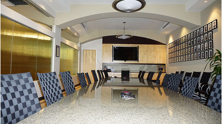 The full Yamaha solution included one RM-CG ceiling microphone, one RM-CR signal processor, one network switch, two line array speakers, and two RM-TT tabletop microphones. Though the room fits up to 40 people, only one ceiling microphone is needed to amplify all voices. Two line array speakers provide ample, equally-distributed sound across the long conference space. As a result, the sound is not too loud in the front, nor too quiet in the back. Lastly, the two RM-TT tabletop microphones serve as stylish, easy-to-reach mute buttons. Because meetings can sometimes involve side conversations and private comments spoken by participants in the room, they’re a convenient and practical solution.