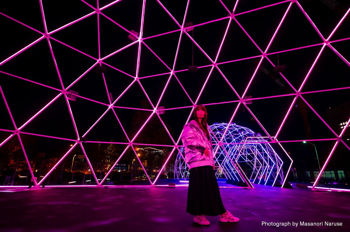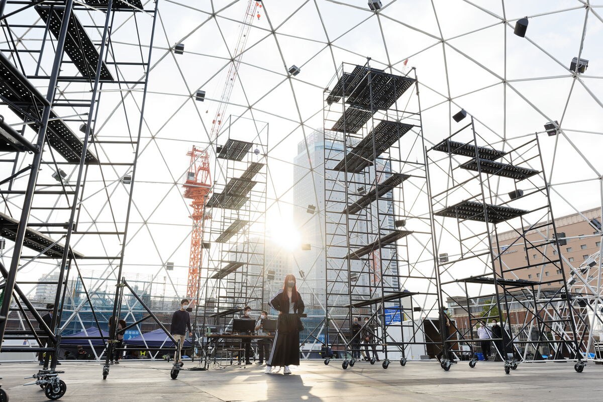 Since the first Yorunoyo, I have been in charge of the overall direction of the concept and content, as well as composing the music. The “Cross Dome,” a collection of three domes, was inspired by the lattice-like crossed-out framework of tents at rock festivals and other events. It also means “intersection” of people, things, and culture. Yokohama is situated on a bay, so I created the music with wind, water, and the flow of the ocean in mind.