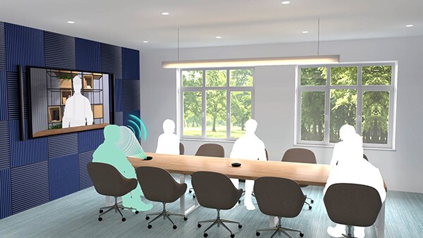 When constant noise like a projector fan or air conditioner system enters the communication space, Yamaha's Noise Reduction technology removes these components to clearly convey the presenter's audio to the far-end.