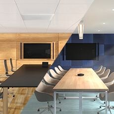 A ceiling array microphone equipped with unique audio signal processing technology that enables high-quality communication