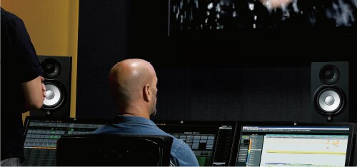 - Three monitor systems are provided: 7.1 channel large monitors, stereo near-field monitors, and compact speakers for user-environment preview.