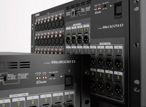 The 5U size Rio3224-D provides 32 ins, 16 outs, and four AES/EBU outputs.