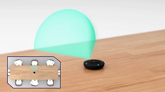 - Automatic speaker tracking allows for flexible room layout and participant positioning