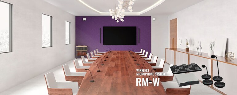The wireless microphone system RM-W adopts the "DECT" standard using 1.9 GHz band and encryption transmission, so there is no concern about radio wave compatibility interference with wireless LAN, etc., and it is designed to be safe in terms of information leakage and security.