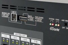 The RMio64-D converts the system’s Dante signal to MADI for transmission to the OB van outside the venue. Sample rate conversion built into the RMio64-D effectively resolves word clock synchronization issues.