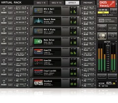 In addition to the Premium Rack described above, the CL consoles feature an Effect Rack that allows simultaneous use of up to 8 effects from a selection of 46 ambience effects and 8 insertion effects, all of outstanding quality. Although a separate EQ rack is provided for the output buses, any of the 8 effects in the Effect Rack can be replaced by graphic EQ units as needed.