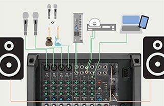 Because the EMX2 is both a mixer and a power amplifier, you only need speakers and mics to have a fully functioning sound system. This makes it easy for newcomers, and even first-time users with no previous audio experience to easily configure their own sound reinforcement system. The EMX2's all-in-one design concept ensures that by just plugging in a single power cable and making a few simple, intuitive connections, anyone can be their own sound engineer.