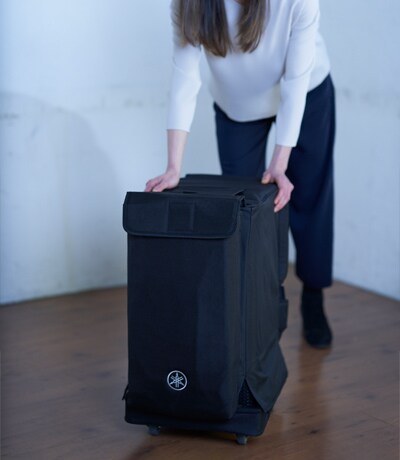 An optional dedicated dolly allows for more convenient transportation — particularly useful for performers transporting additional gear and instruments. Featuring a simple, sturdy mechanism that locks down the speaker cover the lightweight dolly enables smooth, reliable transportation.
