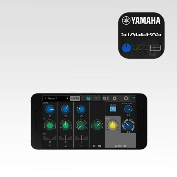 STAGEPAS Editor is STAGEPAS 1K’s dedicated remote control application that allows users to adjust volume and EQ at a distance via Bluetooth during rehearsal or performance. You can also save the adjusted settings for certain songs or applications in order to shorten your setup process in the future and maintain consistency from one performance to the next.