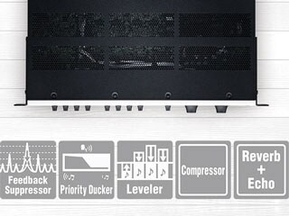 - Advanced DSP functions for music playback and microphone use (Feedback Suppressor, Priority Ducker, Leveler)