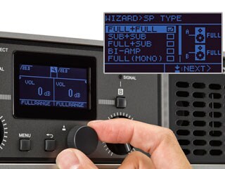The Config Wizard allows users to save even more time during system setup by assigning optimized speaker settings that match your system configuration– simply select the appropriate filter and crossover for each speaker, and Config Wizard will do the rest. Config Wizard also features presets* specifically tuned for each model in Yamaha’s extensive lineup of passive speakers, including the popular CBR, Club, Installation, and VXS/VXC series, and an advanced mode that allows more detailed configuration of parameters such as input routing, input sensitivity, amp gain, and speaker impedance. *Presets may be added and updated in the future.