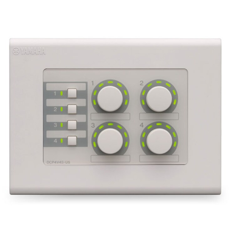 1 Volume & 4 Switch equipped Wall Mount Control panel for DME7, MTX/MRX Series and MA/PA series. Easy connection by CAT5 carrying RS485 + power. Maximum 8 DCPs can be connected to 1 DME7 and MTX/MRX Series. 1 DCP1V4S can be connected to 1 MA2030a/MA2030. Maximum 2 DCPs can be connected to 1 MA2120 or PA2120.