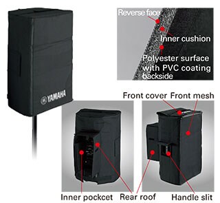 The functional speaker covers that protect your speakers from unfavorable weather conditions during outdoor performances, dusty and dirty warehouse storage, or the rigors of equipment transport on the road.- Trilaminar fabric of durable polyester, with inner PVC coat and cushion inside for impact suppression.- Front mesh allows sound reinforcement with the cover as well as ensures amp cooling.- Rear roof allows easy access to the rear panel with the cover on.- Handle slit allows easy access to the handles for carriage- Inner pocket additional space for carrying cables.*NOTE: The covers do NOT guarantee water-drip protection.