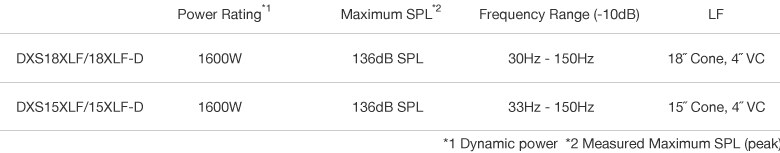 - Compatible Speakers: DXS18XLF/18XLF-D, DXS18XLFW/18XLF-DW, CXS18XLF, CXS18XLFW