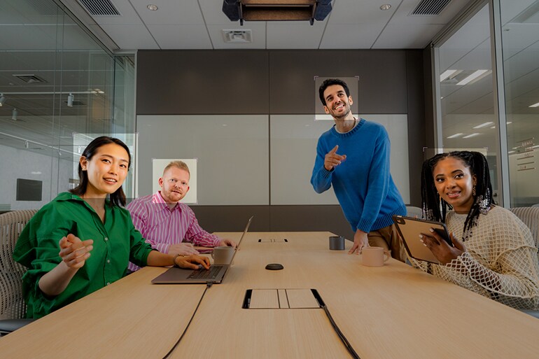 The Smart Framing function recognizes people in the room who are speaking and automatically frames the video signal for remote participants.