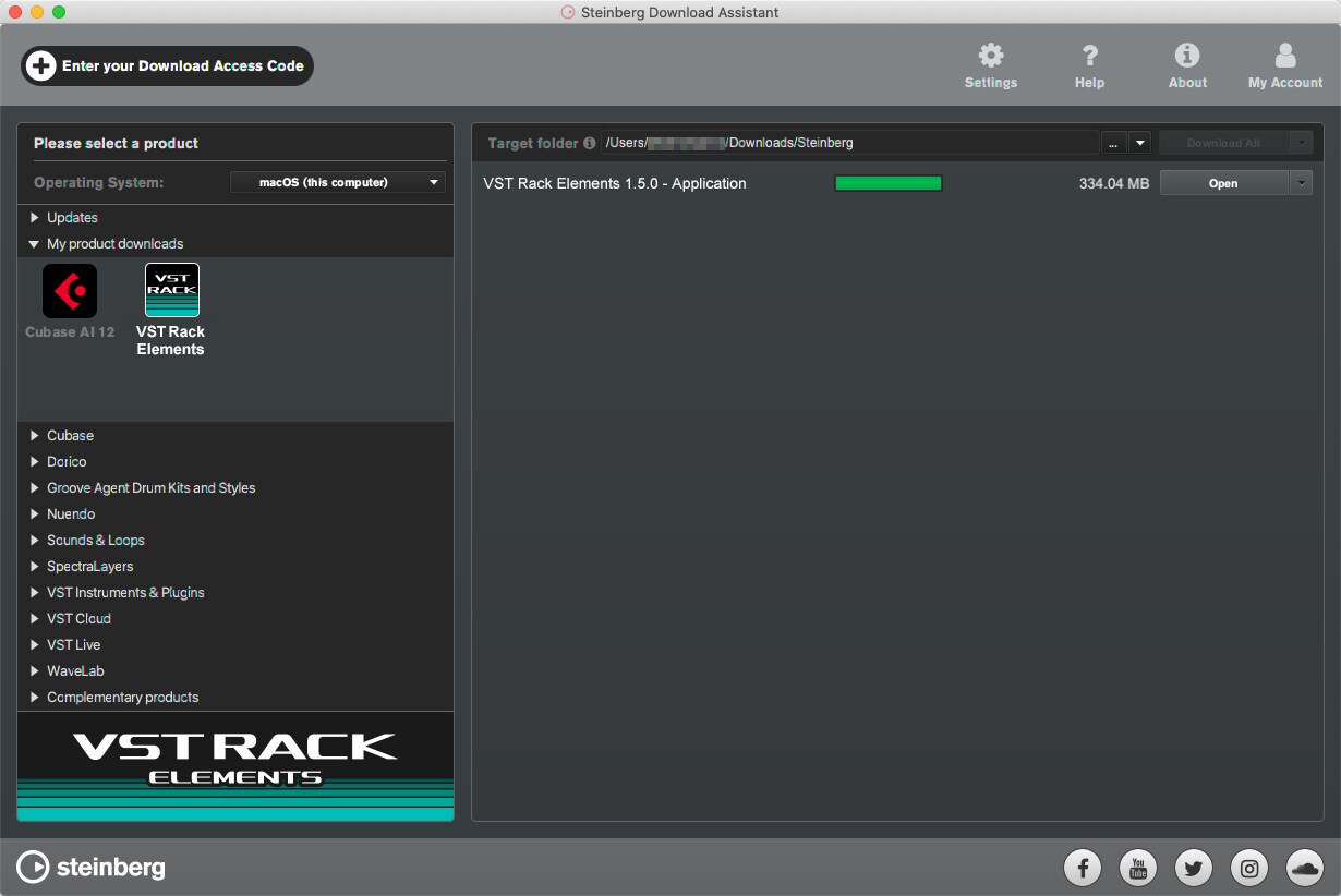 Enter your download access code from the button at the top left in Steinberg Download Assistant.