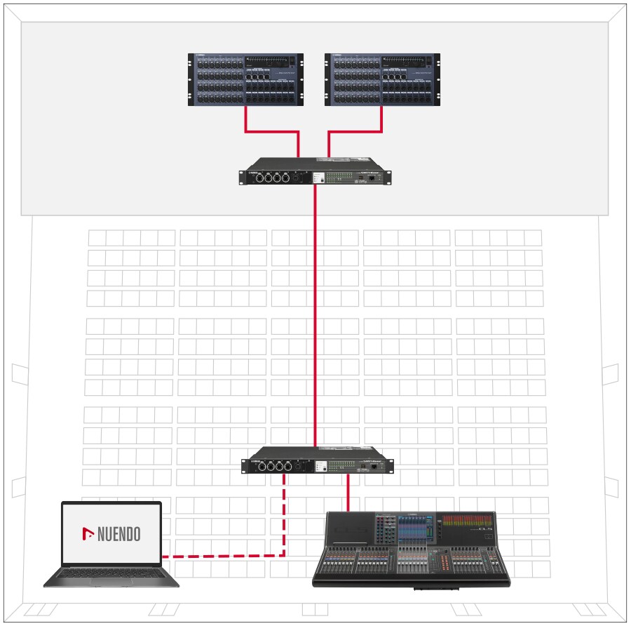 Because Dante uses logical routing instead of physical point-to-point connections, the network can be configured using available ports with just a few mouse clicks.