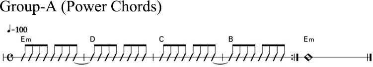 1. Examiners select one riff pattern for the candidate to play.